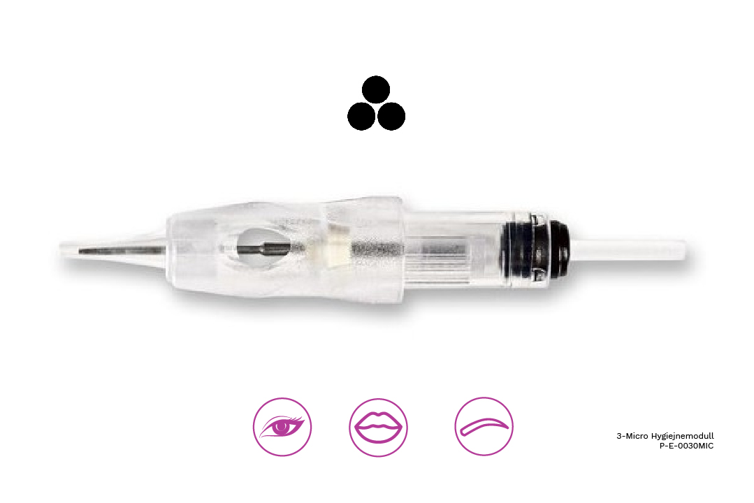 Although the 3-Micro Hygiene module is just as fine as the 1s, more pigment comes into the skin with this needle combination.
